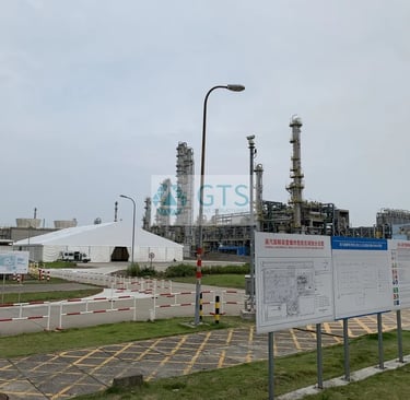 The pillar-free interior provides an unobstructed environment for bulk chemical storage and heavy machinery maneuverability. Certified to withstand 120km/h wind loads, this industrial solution highlights GTS’s ability to deliver high-performance, relocatable buildings that meet the stringent technical requirements of Fortune 500 enterprises.