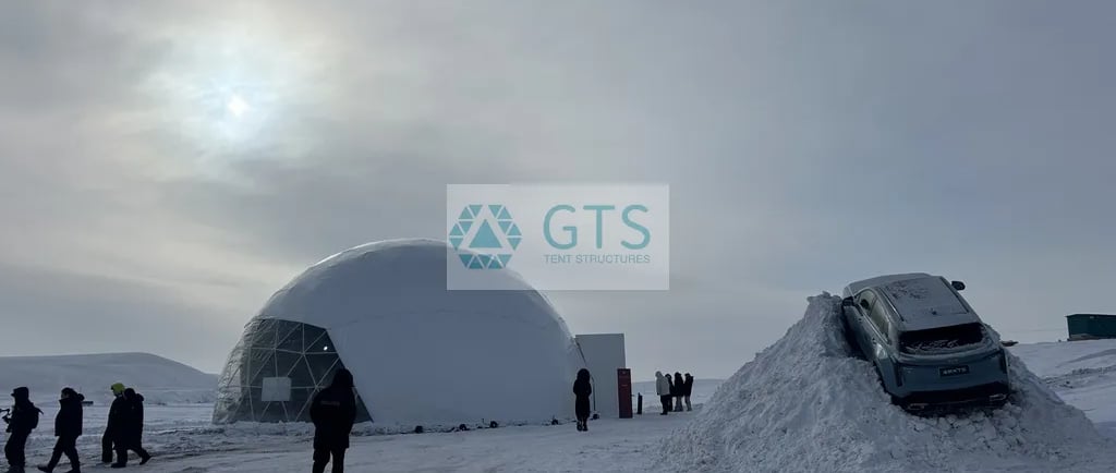 To complement Cadillac’s legacy of "Boldness, Sophistication, and Innovation," the Geodesic Dome was the only logical choice. Beyond its futuristic aesthetic, the dome’s geometric lattice offers peerless structural integrity. Its aerodynamic profile effortlessly deflects the fierce "White Winds" of the Mongolian steppe, while its superior thermal volume ensures that engineers have a stable, warm sanctuary to analyze data while the world freezes outside.