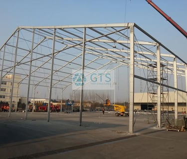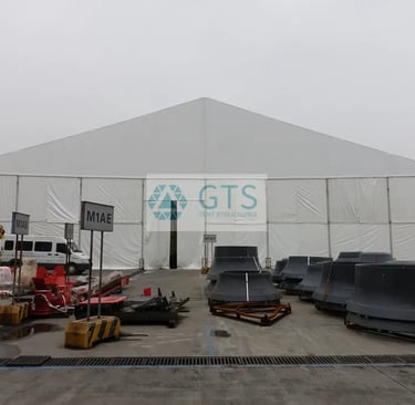When massive vertical clearance and horizontal space are required, GTS stands at the forefront of clear span tent manufacturers. We recently delivered a monumental clear span tent featuring a 40-meter width and an extraordinary 8-meter eave height for a major manufacturing logistics center.