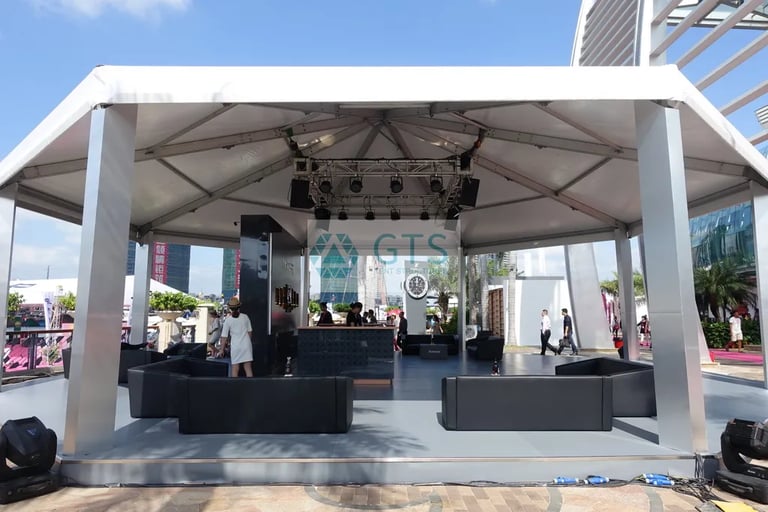 These clear-span structures are designed for both portability and fast installation. Utilizing lightweight, prefabricated aluminum alloy frames, GTS ensures that large-scale polygon tents can be commissioned quickly by professional crews, reducing on-site logistics and labor time.
