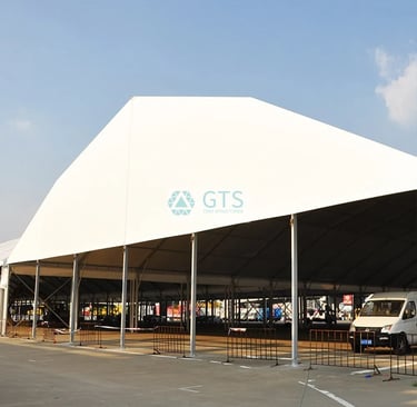 The primary framework of GTS polygon tents is engineered from high-strength, hard-pressed 6061-T6 aluminum alloy, ensuring maximum structural integrity and corrosion resistance. Our premium PVC textile is 100% waterproof, UV-resistant, and fire-retardant, providing a reliable shelter solution for both immediate events and semi-permanent industrial applications.