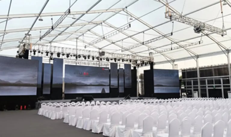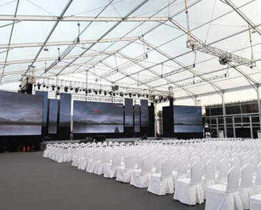 Custom clear-span structures including A-Frame, Arcum, pagoda,Double Decker designs, providing flexible and aesthetically superior spaces for any scale of event.