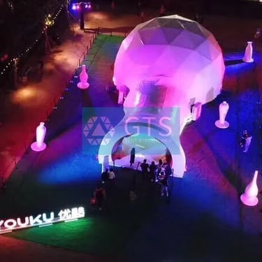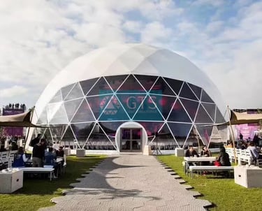 Event Domes, also known as Geodesic Domes, are iconic, self-supporting structures offering a unique and striking visual impact for any occasion. Their spherical design provides maximum floor space with no internal columns, making them ideal for large gatherings.