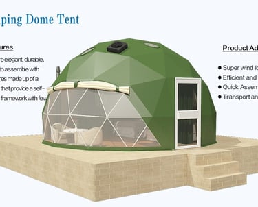 Bespoke Glamping structures and luxury resort tents designed for unique accommodation experiences, focusing on sustainability and comfort.