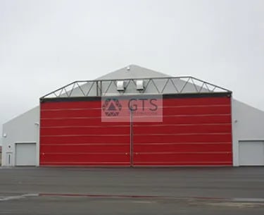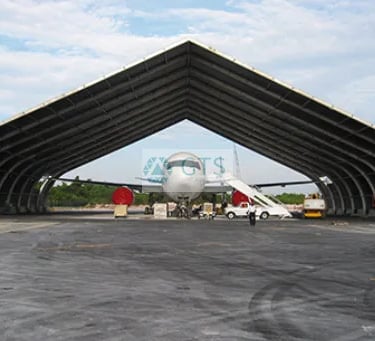 Modular TFS and curved roof structures engineered for extreme wind loads and rapid construction. Designed with specialized door systems to accommodate aircraft and heavy industrial equipment.