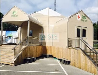 GTS TFS tents offer unmatched modular flexibility. We provide standard spans from 15m to 60m+, with the ability to extend the length indefinitely to meet your specific site requirements. The interior can be tailored with specialized flooring, industrial-grade partitions, and bespoke PVC fabric colors to align with your corporate branding or project theme.