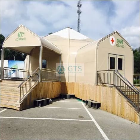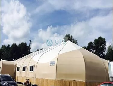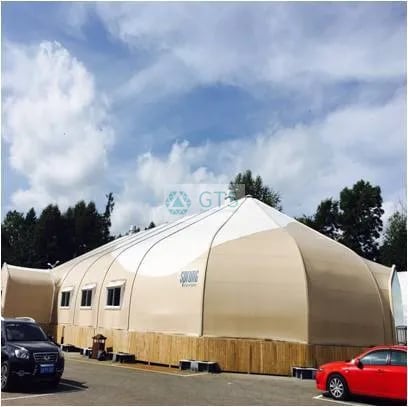 The GTS TFS (Tension Fabric Structure) is a high-performance evolution of the traditional A-frame tent, distinguished by its unique curved column architecture and clear-span engineering. This innovative design eliminates all internal support pillars, providing a massive, unobstructed interior space while significantly increasing structural stability for industrial and commercial applications.